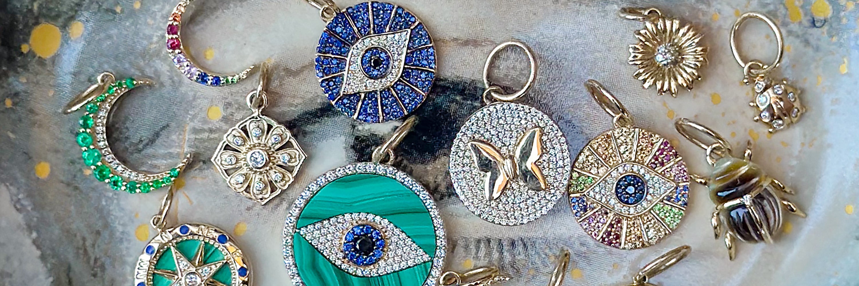 14K Rainbow Sapphire Evil Eye Charm