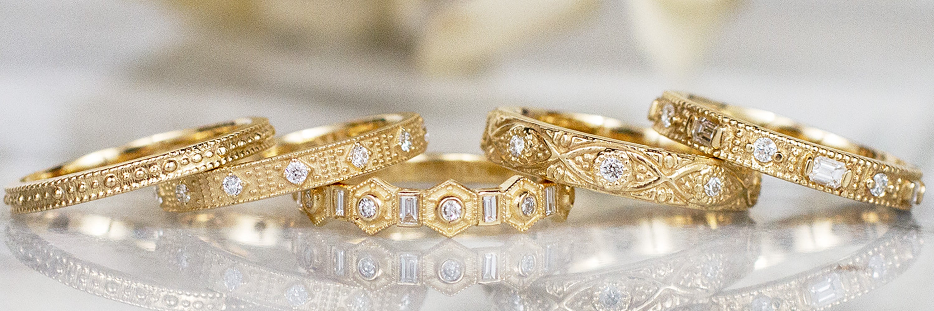 14K Vintage Inspired Marquise & Round Diamond Stackable Band