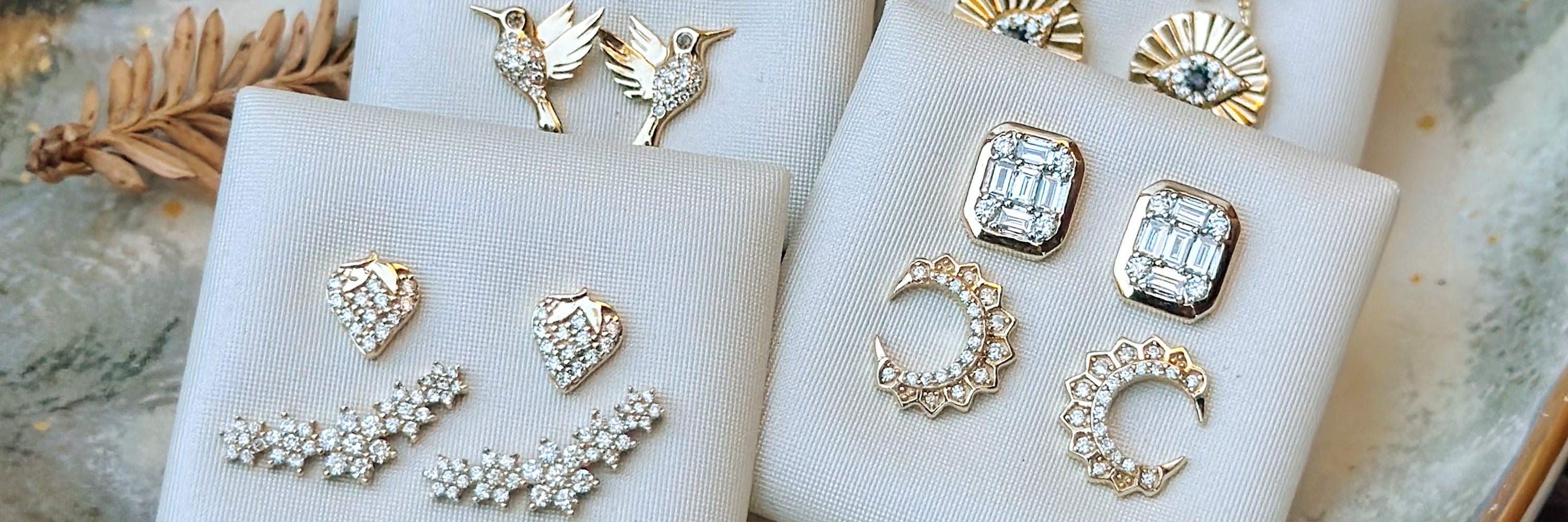 14K Blue Sapphire & Diamond Eye Fluted Studs